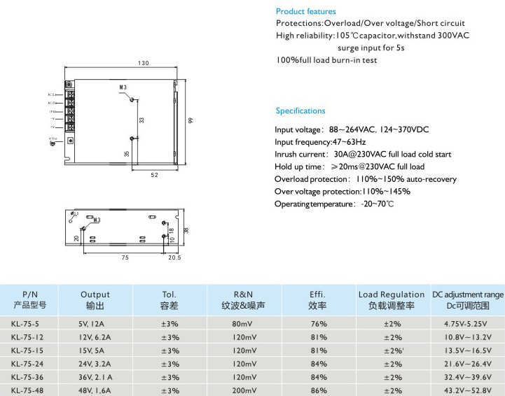 75W工控電源